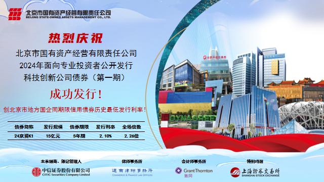 北京國資公司成功發(fā)行2024年首期科技創(chuàng)新公司債券15億元