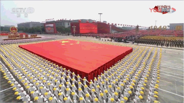 10月1日上午,慶祝中華人民共和國成立70周年大會和盛大的閱兵式以及群眾游行在天安門廣場舉行。此次群眾游行以時間為軸線,分為“建國創(chuàng)業(yè)”、“改革開放”、“偉大復(fù)興”三個部分。天安門廣場上豎起的6塊大屏幕播放了時長約65分鐘的背景視頻,與約10萬名群眾,70組彩車組成的36個方陣和3個情境表演同步推進(jìn),共同鋪展一幅壯美的歷史畫卷。