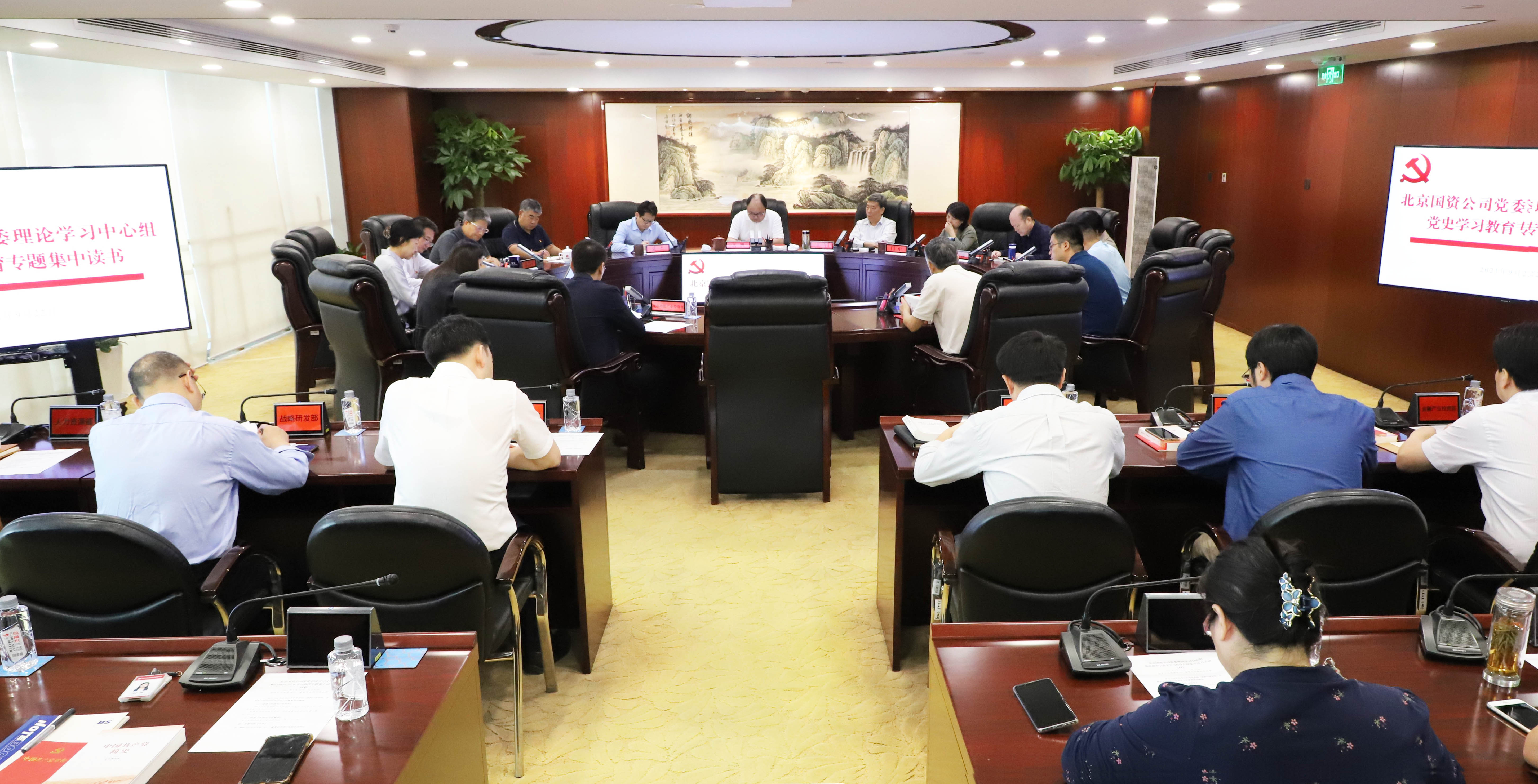 9月22日,北京國資公司黨委理論學習中心組和總部中層開展黨史學習教育第四次專題集中讀書活動,集中學習了習近平總書記在中央黨校(國家行政學院)中青班開班式上的重要講話精神、《中國共產黨簡史》、《中國共產黨章程》,觀看視頻《追尋》,中心組成員圍繞學習貫徹習近平總書記“七一”重要講話精神和指定學習材料進行了交流研討。