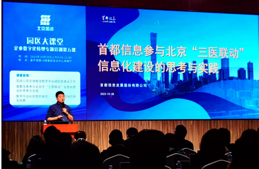 首信公司總經理張益謙以“首都信息參與北京“三醫(yī)聯(lián)動”信息化建設的思考與實踐”為主題,對“三醫(yī)聯(lián)動”背景并就首都信息運用三醫(yī)數(shù)據(jù)聯(lián)動服務民生、服務政府、服務社會的具體工作進行了詳細介紹,分享了首都信息深入開展提升首都百姓看病就醫(yī)體驗的專項調研,積極運用技術能力服務支撐首都醫(yī)療健康信息化,自籌資金建設北京市新醫(yī)保信息平臺,持續(xù)為首都百姓提供醫(yī)保實時結算服務等方面的經驗和探索。