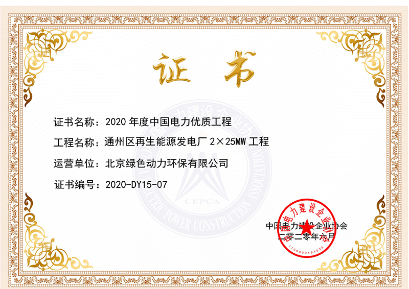 通州項(xiàng)目電力優(yōu)質(zhì)工程獎(jiǎng)獲獎(jiǎng)證書(shū)
