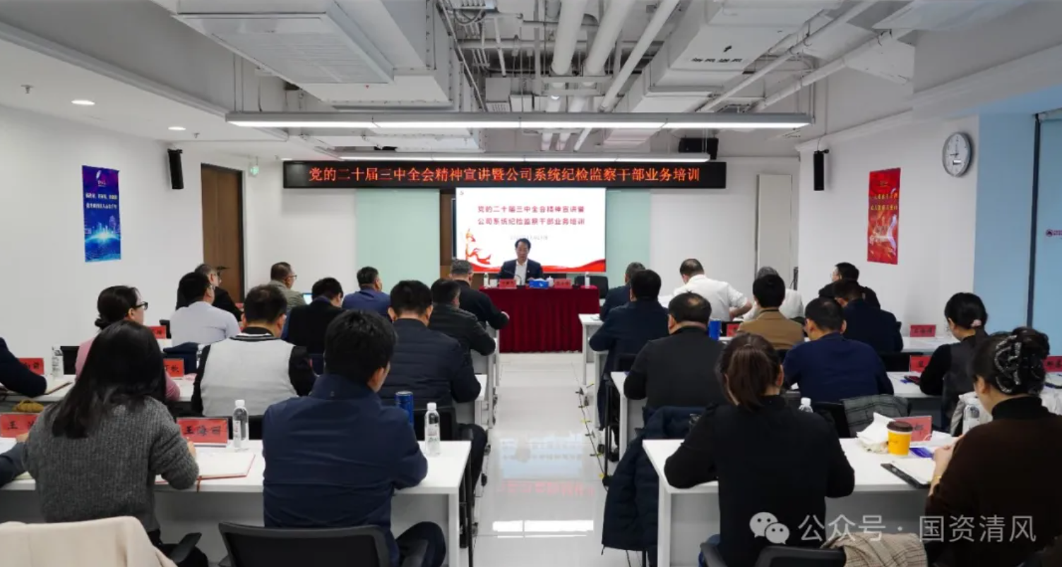 為深入學(xué)習(xí)貫徹黨的二十屆三中全會精神,鍛造忠誠干凈擔(dān)當(dāng)?shù)募o(jì)檢監(jiān)察干部隊伍,11月21日,國資公司紀(jì)委組織開展黨的二十屆三中全會精神宣講暨紀(jì)檢監(jiān)察干部業(yè)務(wù)培訓(xùn)。公司系統(tǒng)全體專兼職紀(jì)檢監(jiān)察干部、巡察干部共80余人參加。