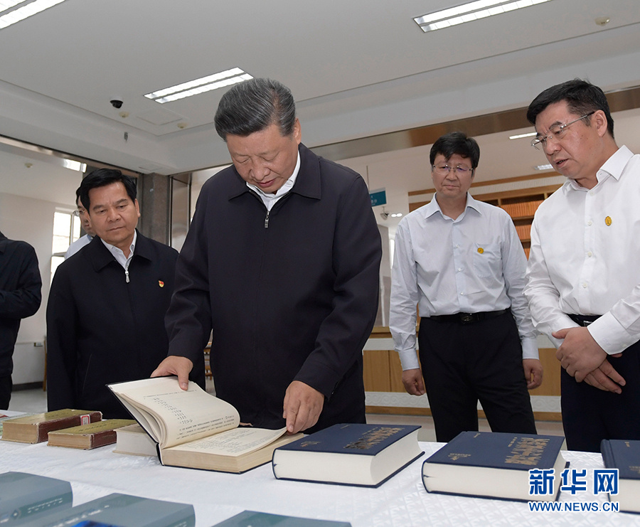 16日上午,習(xí)近平在呼和浩特市考察,首先來(lái)到內(nèi)蒙古大學(xué)。作為我們黨在民族地區(qū)創(chuàng)辦的第一所綜合性大學(xué),為民族地區(qū)人才培養(yǎng)和經(jīng)濟(jì)社會(huì)發(fā)展作出了貢獻(xiàn)。在圖書館,習(xí)近平聽取學(xué)校建設(shè)發(fā)展、教學(xué)科研、人才培養(yǎng)、思想政治建設(shè)等工作情況介紹,察看蒙古語(yǔ)言文學(xué)歷史成果圖書展示。蒙古文古籍展閱室收藏了眾多歷史文化典籍,記載了蒙古族文化與其他民族文化融合發(fā)展的歷史。習(xí)近平認(rèn)真聽講解,不時(shí)駐足端詳。習(xí)近平強(qiáng)調(diào),要加強(qiáng)對(duì)蒙古文古籍的搜集、整理、保護(hù),挖掘弘揚(yáng)蘊(yùn)含其中的民族團(tuán)結(jié)進(jìn)步思想內(nèi)涵,激勵(lì)各族人民共同團(tuán)結(jié)奮斗、共同繁榮發(fā)展。