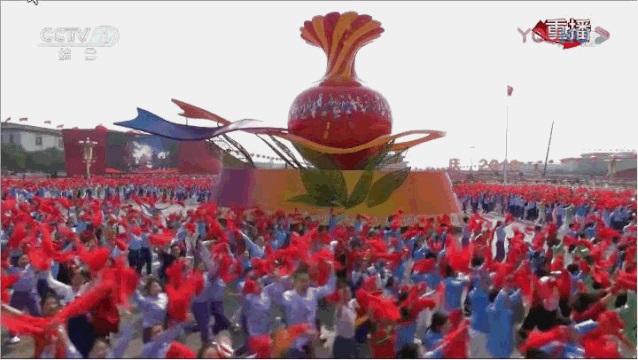 細(xì)心的觀眾應(yīng)該會發(fā)現(xiàn),今年國慶七十周年的慶典上已不見“翻花組字”隊(duì)伍的身影,伴隨著十萬群眾游行隊(duì)伍的是一組內(nèi)容豐富、制作精良的視覺背景。