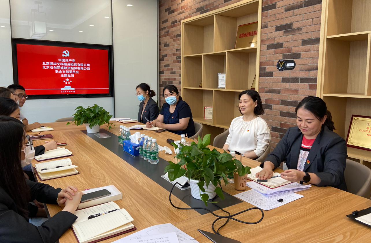 6月24日下午,國資公司副總經(jīng)理孫婧赴黨建基層聯(lián)系點北京再擔(dān)保公司所屬國華石創(chuàng)公司聯(lián)合黨支部,參加“重溫百年黨史 汲取青春力量”主題黨日活動。再擔(dān)保公司黨總支委員、常務(wù)副總經(jīng)理,國華擔(dān)保公司總經(jīng)理及國華石創(chuàng)聯(lián)合黨支部全體黨員參加活動。