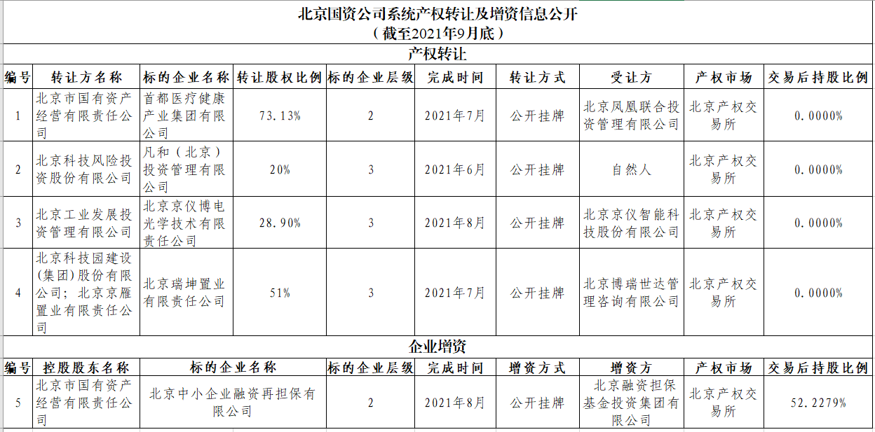 北京國(guó)資公司系統(tǒng)產(chǎn)權(quán)轉(zhuǎn)讓及增資信息公開(kāi)