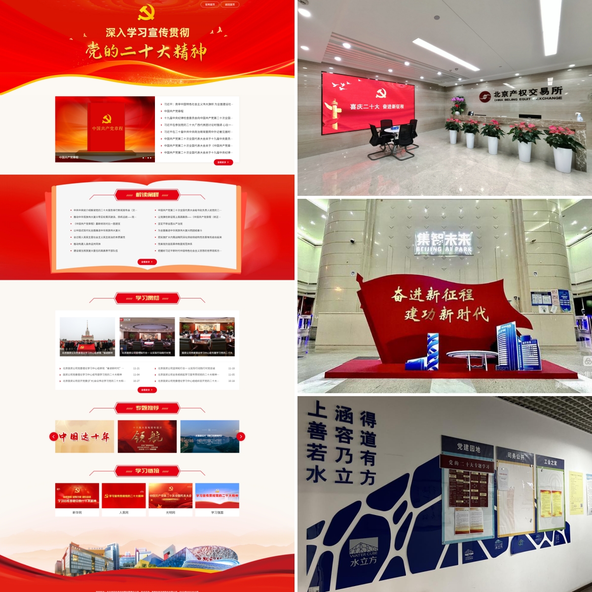五是聚焦營造氛圍帶動學。公司黨委充分利用公司官網、微信公眾號、OA辦公平臺、國資通APP等宣傳陣地,設計推出“學習宣傳貫徹黨的二十大精神”專題頁面和專欄,及時推送權威學習內容,生動展示各級黨組織和廣大黨員學習貫徹黨的二十大精神的情況。北京產權交易所黨委、國家體育場公司黨委等在公司門戶網站、宣傳展示屏、辦公場所宣傳欄等宣傳陣地布置展示學習黨的二十大精神的宣傳內容,積極營造“喜慶二十大,奮進新征程”的熱烈氛圍。國家游泳中心公司黨總支充分利用辦公區(qū)黨建展板打造黨的二十大專題學習“微陣地”,圖文并茂地展示了黨的二十大報告等內容。集智未來公司黨支部在園區(qū)大廳設置“奮進新征程 建功新時代”主題立體展板,成為園區(qū)企業(yè)支部活動“網紅”打卡點。北京再擔保公司黨總支、國苑公司黨支部等通過黨支部微信群、公司黨建微信公眾號推送黨的二十大精神學習資料,發(fā)布黨組織學習動態(tài),推動黨的二十大精神學習走深走實。