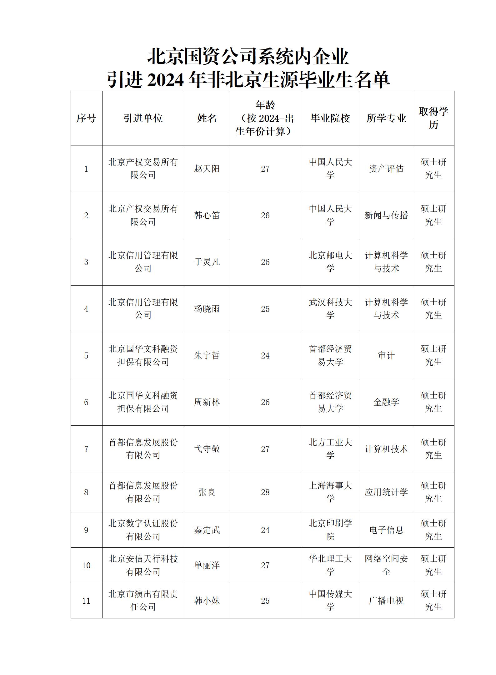 北京國(guó)資公司系統(tǒng)內(nèi)企業(yè)引進(jìn)2024年非北京生源畢業(yè)生的公示