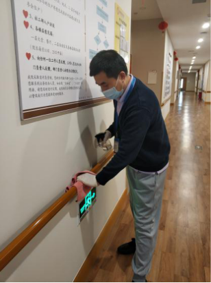 誠和敬長者公館工作人員進(jìn)行消毒工作
