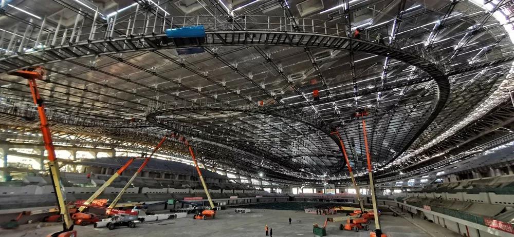 經(jīng)過建設(shè)者們的艱苦努力,從2018年至今“冰絲帶”先后完成了“精耕細(xì)作”、“拔地而起”、“編織天幕”和“絲帶飛舞”。